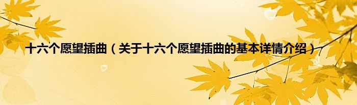 本文关于十六个愿望插曲的基本详情介绍就讲解完毕,希望对大家有所帮助。
