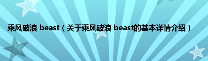 本文关于乘风破浪 beast的基本详情介绍就讲解完毕,希望对大家有所帮助。
