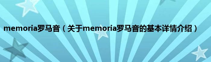 memoria罗马音(关于memoria罗马音的基本详情介绍)