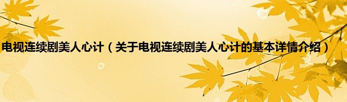 本文关于电视连续剧美人心计的基本详情介绍就讲解完毕,希望对大家有所帮助。