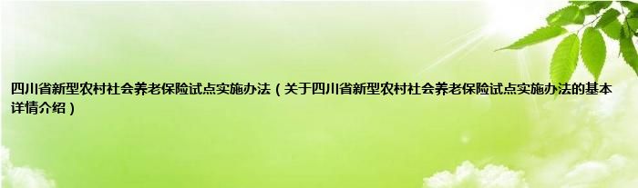 本文关于四川省新型农村社会养老保险试点实施办法的基本详情介绍就讲解完毕,希望对大家有所帮助。