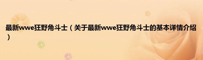 本文关于最新wwe狂野角斗士的基本详情介绍就讲解完毕,希望对大家有所帮助。