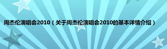 周杰伦演唱会2010(关于周杰伦演唱会2010的基本详情介绍)
