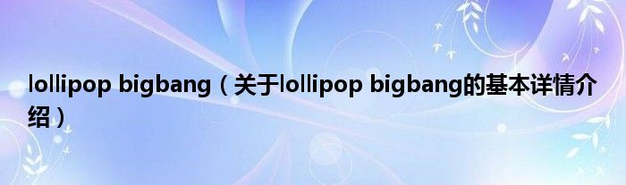 lollipop bigbang(关于lollipop bigbang的基本详情介绍)