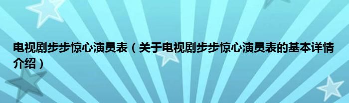 本文关于电视剧步步惊心演员表的基本详情介绍就讲解完毕,希望对大家有所帮助。