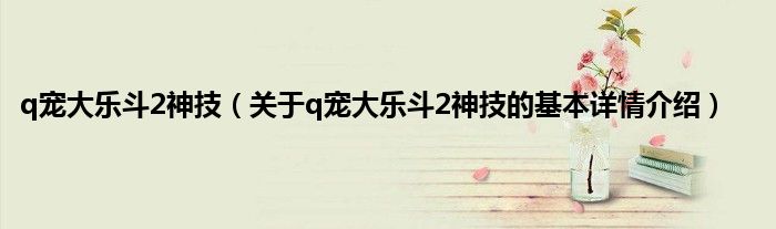 q宠大乐斗2神技(关于q宠大乐斗2神技的基本详情介绍)
