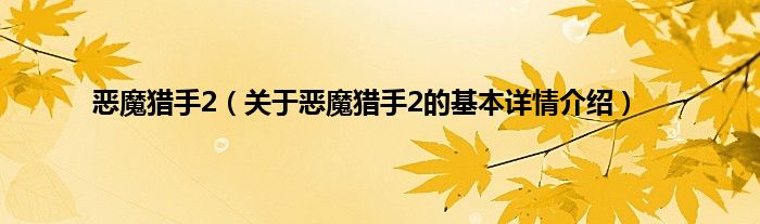 本文关于恶魔猎手2的基本详情介绍就讲解完毕,希望对大家有所帮助。