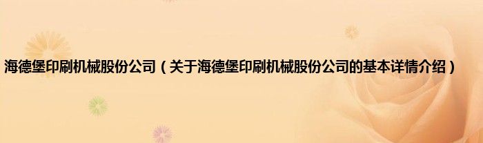 本文关于海德堡印刷机械股份公司的基本详情介绍就讲解完毕,希望对大家有所帮助。