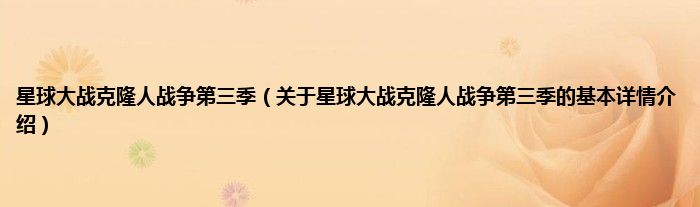 星球大战克隆人战争第三季(关于星球大战克隆人战争第三季的基本详情介绍)