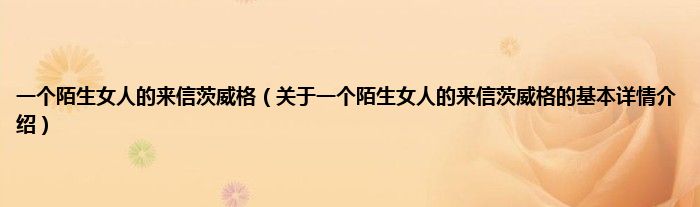 一个陌生女人的来信茨威格(关于一个陌生女人的来信茨威格的基本详情介绍)