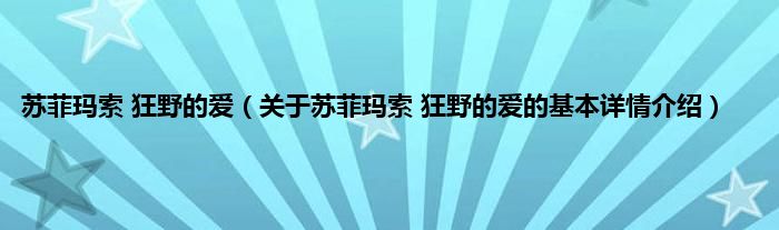 本文关于苏菲玛索 狂野的爱的基本详情介绍就讲解完毕,希望对大家有所帮助。