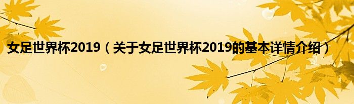 本文关于女足世界杯2019的基本详情介绍就讲解完毕,希望对大家有所帮助。
