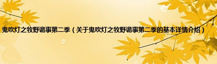 本文关于鬼吹灯之牧野诡事第二季的基本详情介绍就讲解完毕,希望对大家有所帮助。
