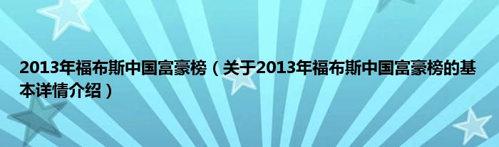 本文关于2013年福布斯中国富豪榜的基本详情介绍就讲解完毕,希望对大家有所帮助。