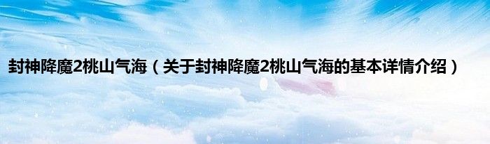 本文关于封神降魔2桃山气海的基本详情介绍就讲解完毕,希望对大家有所帮助。
