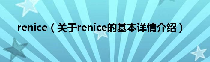 大家好我是小蝌蚪,renice,关于renice的基本详情介绍很多人还不知道,那么现在让我们一起来看看吧!