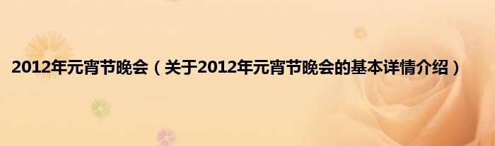 本文关于2012年元宵节晚会的基本详情介绍就讲解完毕,希望对大家有所帮助。