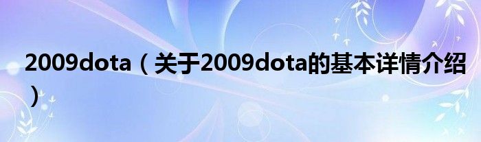 本文关于2009dota的基本详情介绍就讲解完毕,希望对大家有所帮助。
