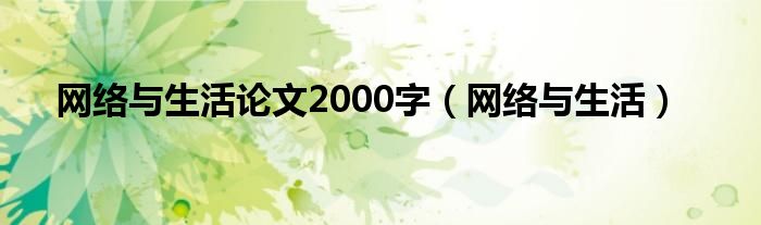 大家好,小问来为大家解答以上问题。网络与生活论文2000字,网络与生活这个很多人还不知道,现在让我们一起来看看吧!