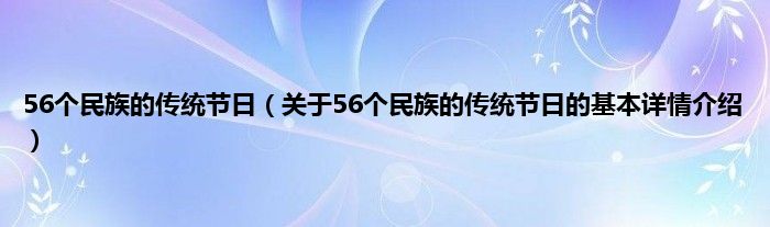 本文关于56个民族的传统节日的基本详情介绍就讲解完毕,希望对大家有所帮助。
