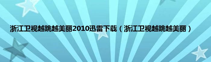 浙江卫视越跳越美丽2010迅雷下载(浙江卫视越跳越美丽)