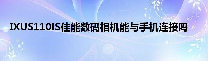 以上就是【IXUS110IS佳能数码相机能与手机连接吗】相关内容。
