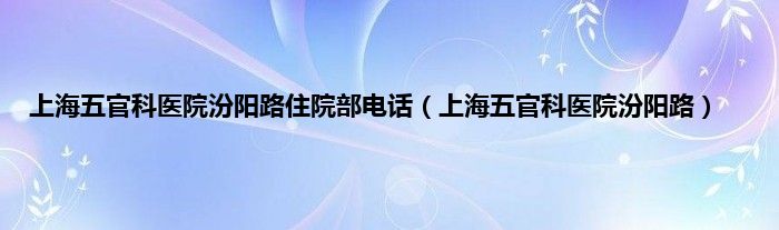 上海五官科医院汾阳路住院部电话(上海五官科医院汾阳路)