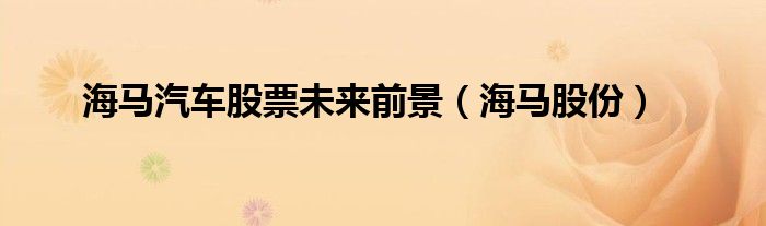 大家好,小问来为大家解答以上问题。海马汽车股票未来前景,海马股份这个很多人还不知道,现在让我们一起来看看吧!