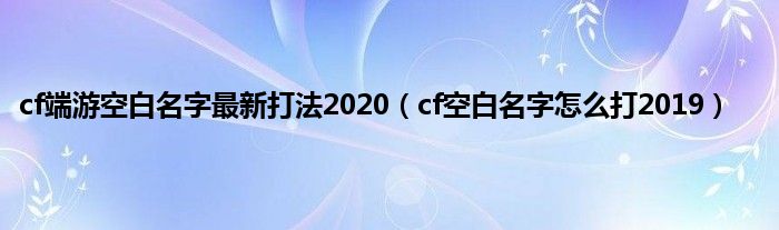 大家好,小问来为大家解答以上问题。cf端游空白名字最新打法2020,cf空白名字怎么打2019这个很多人还不知道,现在让我们一起来看看吧!