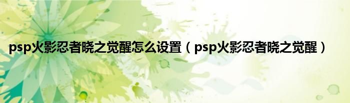 psp火影忍者晓之觉醒怎么设置(psp火影忍者晓之觉醒)