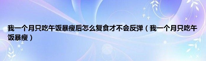 以上就是【我一个月只吃午饭暴瘦后怎么复食才不会反弹,我一个月只吃午饭暴瘦】相关内容。