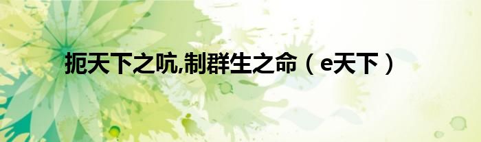 大家好,小问来为大家解答以上问题。扼天下之吭,制群生之命,e天下这个很多人还不知道,现在让我们一起来看看吧!