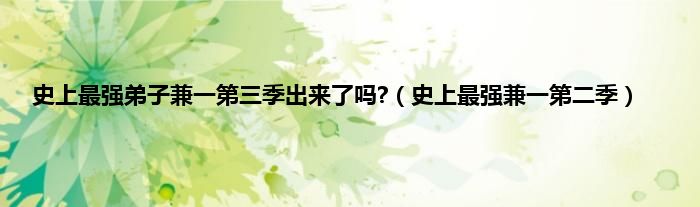 以上就是【史上最强弟子兼一第三季出来了吗?,史上最强兼一第二季】相关内容。