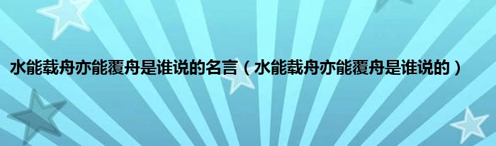 大家好,小问来为大家解答以上问题。水能载舟亦能覆舟是谁说的名言,水能载舟亦能覆舟是谁说的这个很多人还不知道,现在让我们一起来看看吧!