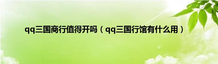 以上就是【qq三国商行值得开吗,qq三国行馆有什么用】相关内容。