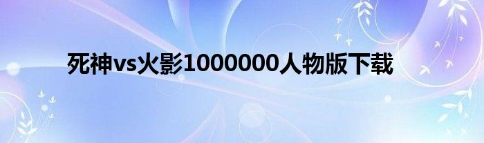 大家好,小问来为大家解答以上问题。死神vs火影1000000人物版下载这个很多人还不知道,现在让我们一起来看看吧!