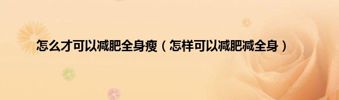 以上就是【怎么才可以减肥全身瘦,怎样可以减肥减全身】相关内容。