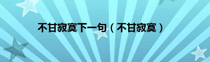 以上就是【不甘寂寞下一句,不甘寂寞】相关内容。