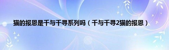 大家好,小问来为大家解答以上问题。猫的报恩是千与千寻系列吗,千与千寻2猫的报恩这个很多人还不知道,现在让我们一起来看看吧!