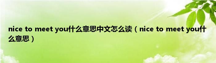 nice to meet you什么意思中文怎么读(nice to meet you什么意思)