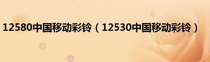 大家好,小问来为大家解答以上问题。12580中国移动彩铃,12530中国移动彩铃这个很多人还不知道,现在让我们一起来看看吧!
