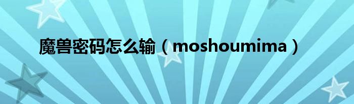 以上就是【魔兽密码怎么输,moshoumima】相关内容。