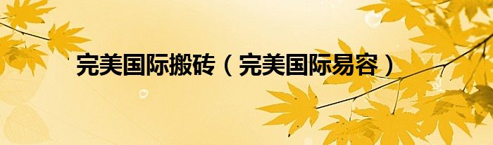 大家好,小问来为大家解答以上问题。完美国际搬砖,完美国际易容这个很多人还不知道,现在让我们一起来看看吧!