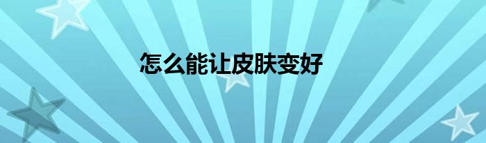 怎么能让皮肤变好