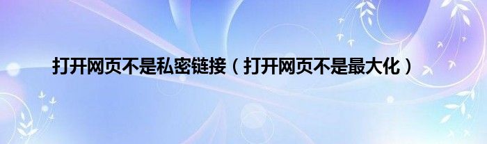 大家好,小问来为大家解答以上问题。打开网页不是私密链接,打开网页不是最大化这个很多人还不知道,现在让我们一起来看看吧!