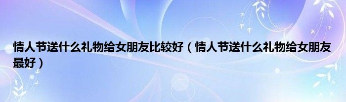 以上就是【情人节送什么礼物给女朋友比较好,情人节送什么礼物给女朋友最好】相关内容。