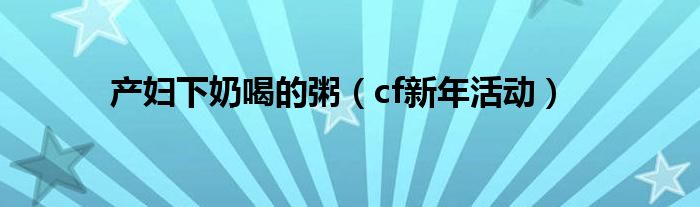 大家好,小问来为大家解答以上问题。产妇下奶喝的粥,cf新年活动这个很多人还不知道,现在让我们一起来看看吧!