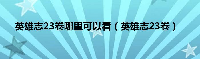 大家好,小问来为大家解答以上问题。英雄志23卷哪里可以看,英雄志23卷这个很多人还不知道,现在让我们一起来看看吧!