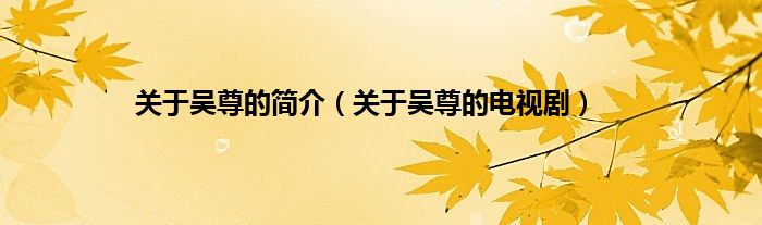 以上就是【关于吴尊的简介,关于吴尊的电视剧】相关内容。
