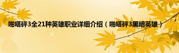 大家好,小问来为大家解答以上问题。啪嗒砰3全21种英雄职业详细介绍,啪嗒砰3黑暗英雄这个很多人还不知道,现在让我们一起来看看吧!